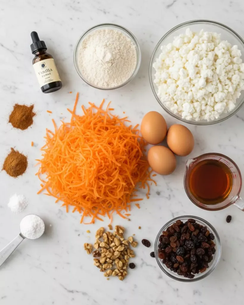 Ingredients for Carrot Cake Cottage Cheese Bake