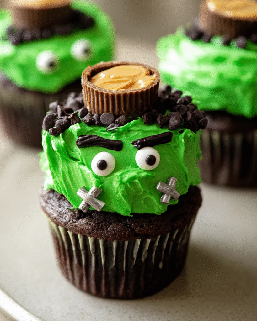 Bring the world’s most famous monster to life in the cutest way possible with these Easy Frankenstein Cupcakes. This is one of the most kid-friendly Halloween cupcake recipes you can make, perfect for a fun afternoon of decorating with little helpers. Start with your favorite chocolate cupcake, top it with a swirl of bright green frosting, and then the real fun begins. Use chocolate sprinkles for his signature hair, candy eyes to give him a friendly expression, and a small line of black icing for his mouth and stitch. They are charming, simple, and almost too cute to eat!