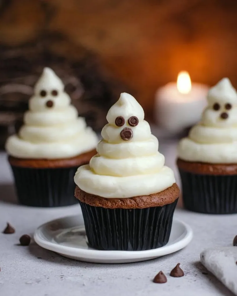 While our ghost cupcakes listed above are perfect for a quick treat, you can create a truly showstopping ghostly army by adapting our full-sized Ghost Cake Recipe. Bake your favorite vanilla or chocolate cupcake base. Once cooled, roll out white fondant and use a round cookie cutter to cut out circles. Drape a circle over each cupcake to create a flowing, ghostly sheet. Use a black edible marker to draw on spooky or silly faces. These fondant ghosts create a more polished, three-dimensional look that is sure to impress.