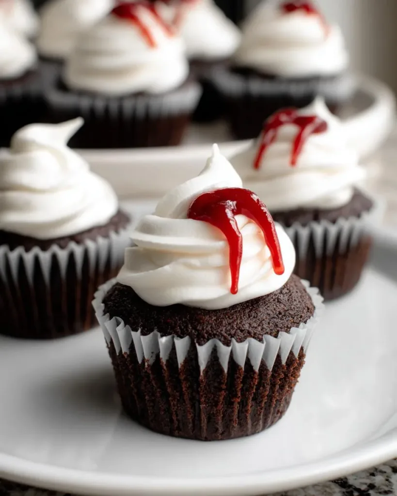 Simple, elegant, and just a little bit sinister, these cupcakes prove that sometimes less is more. Perfect for a more sophisticated Halloween gathering, these Vampire Bite Cupcakes are wonderfully easy to create. The key is a pristine canvas of fluffy white frosting—vanilla or cream cheese works beautifully. Once frosted, use the end of a chopstick or a piping tip to create two small indentations. Then, carefully place a drop of red food gel or raspberry sauce into the “bite marks” and let it drip ever so slightly. The result is a chillingly realistic and delicious treat.