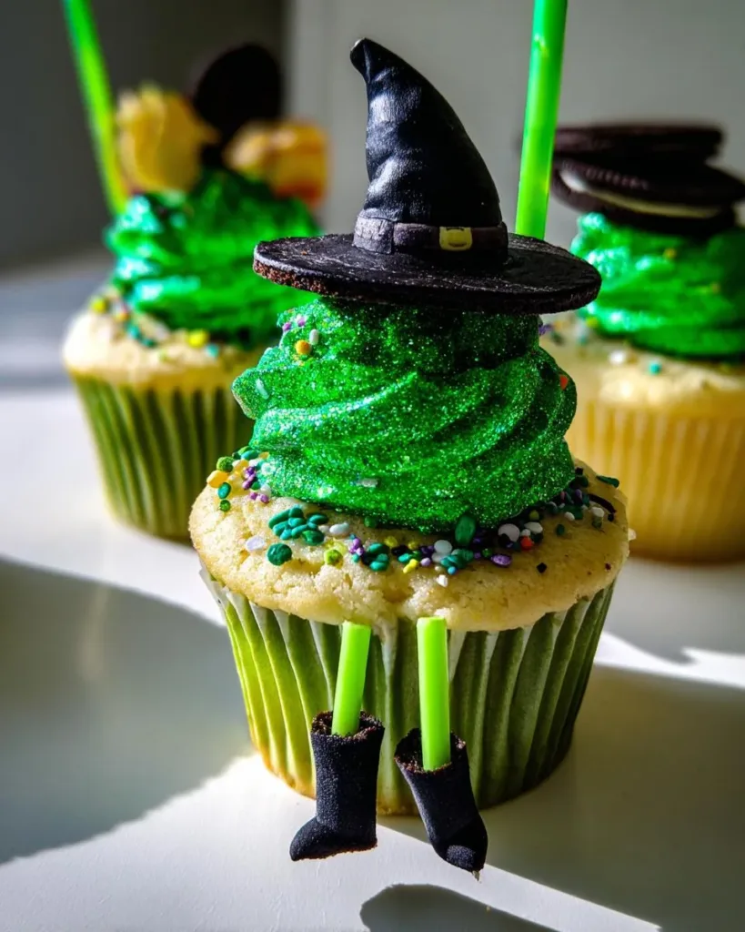 Double, double, toil and trouble, these Wicked Witch Cupcakes are magically delicious and brilliantly designed. They capture the iconic look of a witch’s hat with a clever and simple trick. Start with a swirl of spooky green or purple frosting on a rich chocolate cupcake. Then, place a chocolate wafer cookie on top and use a dab of frosting to “glue” a Hershey’s Kiss or a chocolate cone to the center. You can even add a small ribbon of orange or green frosting around the base of the cone for a hat band. It’s an ingenious and tasty design that looks far more complicated than it is.