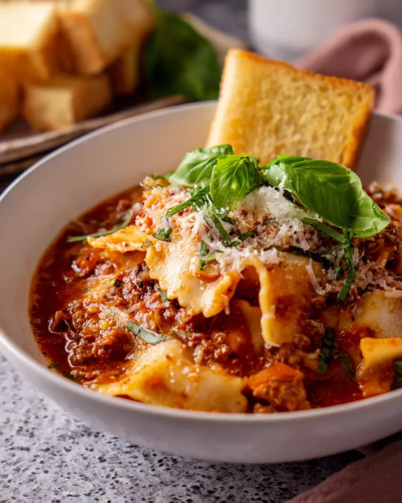 Oh, let me tell you how I love to serve this high protein lasagna soup – because honestly, it’s a complete meal all on its own, but a few perfect pairings can take it from “wow” to “can we have this every night?!” Here are my family’s favorite ways to round out the meal: