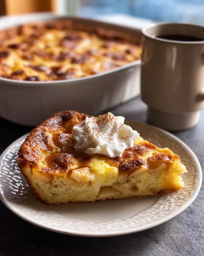 To reheat, pop a slice into the microwave for 30–45 seconds or warm it in a 300°F oven until heated through. It reheats well without drying out, thanks to the moisture from the apples and cottage cheese.