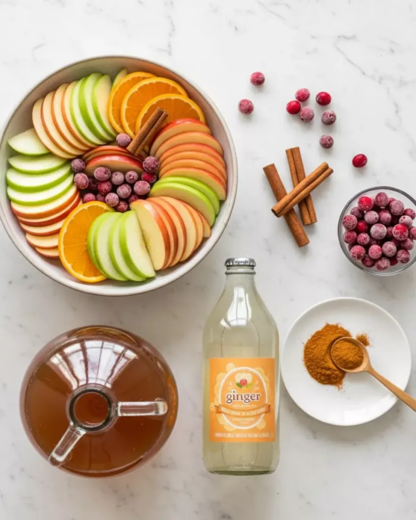 A refreshing and festive non-alcoholic punch perfect for gatherings, featuring apple cider, ginger ale, fresh fruits, and warm spices.