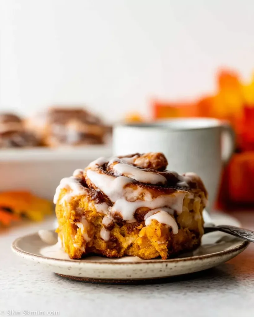 Yes! Adding pumpkin to the dough gives the rolls extra moisture, flavor, and a tender, fluffy texture that regular cinnamon rolls often lack.