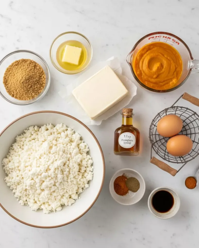 Ingredients for Pumpkin Cottage Cheese Cheesecake Bars