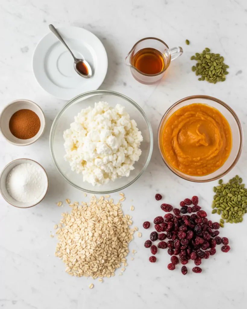 Ingredients for Pumpkin Cranberry Cottage Cheese Cookies