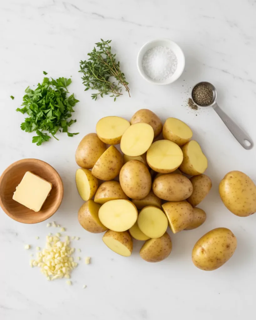 Here’s what you’ll need to make these heavenly roasted garlic potatoes – simple stuff that comes together for big flavor. I always double-check my ingredients before starting because there’s nothing worse than getting halfway through and realizing you’re short on garlic (trust me, been there!).