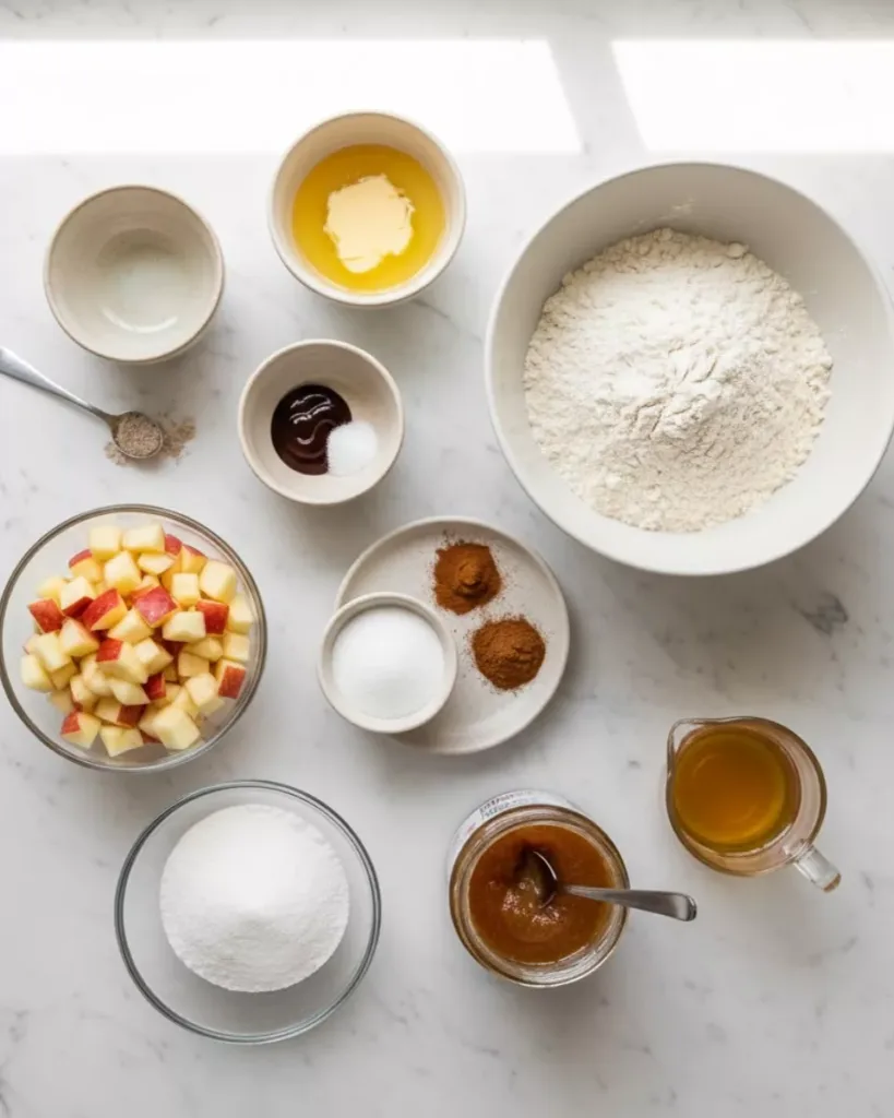 Okay, let’s gather our goodies! Here’s everything you’ll need for this heavenly vegan apple fritter bread – I’ve learned through trial and error that quality ingredients make all the difference. Pro tip: measure everything before you start (my grandma called this “mise en place” and it saves SO much stress):